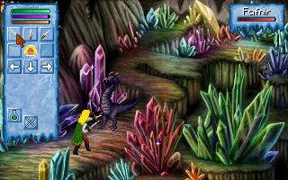 As far as other gameplay mechanics go, Heroine’s Quest offers class-specific methods of achieving goals similar to its inspiration. The warrior can bash monsters, the sorceress wields spells and the rogue cheats. Each class also has specific quests, such as an opponent in the swamp that can only be fought by warriors, a magic mini-game for sorceresses and a thieves’ guild for rogues – who are encouraged to sequence break by stealing major items from NPCs before they’re needed. There’s no secret fourth paladin class a la Quest for Glory, but there is a hidden honor meter, which players can max out to gain access to the flaming sword Balmung, straight out of The Nibelungenlied.