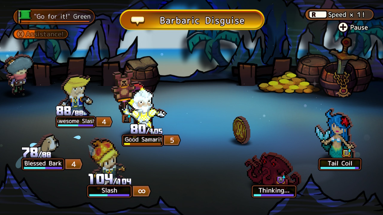 But Heroland does occasionally get serious, with one such example being a chapter that takes a bit of time to talk about the harsh reality of the manga industry – excessive work hours, lack of unionization, and working for “exposure”. The customers of Heroland have some very real problems, too. For example, during the sidequests for Linda, a seemingly ordinary mother of two, she contemplates the darkest moments of her marriage, such as fights with her husband or her postpartum depression that caused her to leave her family for two years. Even the more fantastical characters like the brooding knight captain Cee Plusse have relatable problems, as his sidequests are all about helping him obtain toys and other things he missed out on due to his rough childhood. It’s captivating stuff that incentivizes getting to know the characters well enough to unlock and complete their sidequests. The only problem is that increasing your bond with your customers involves lots of combat, which is unquestionably Heroland’s biggest flaw.