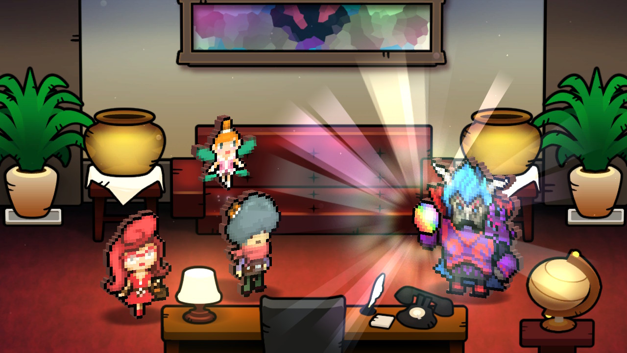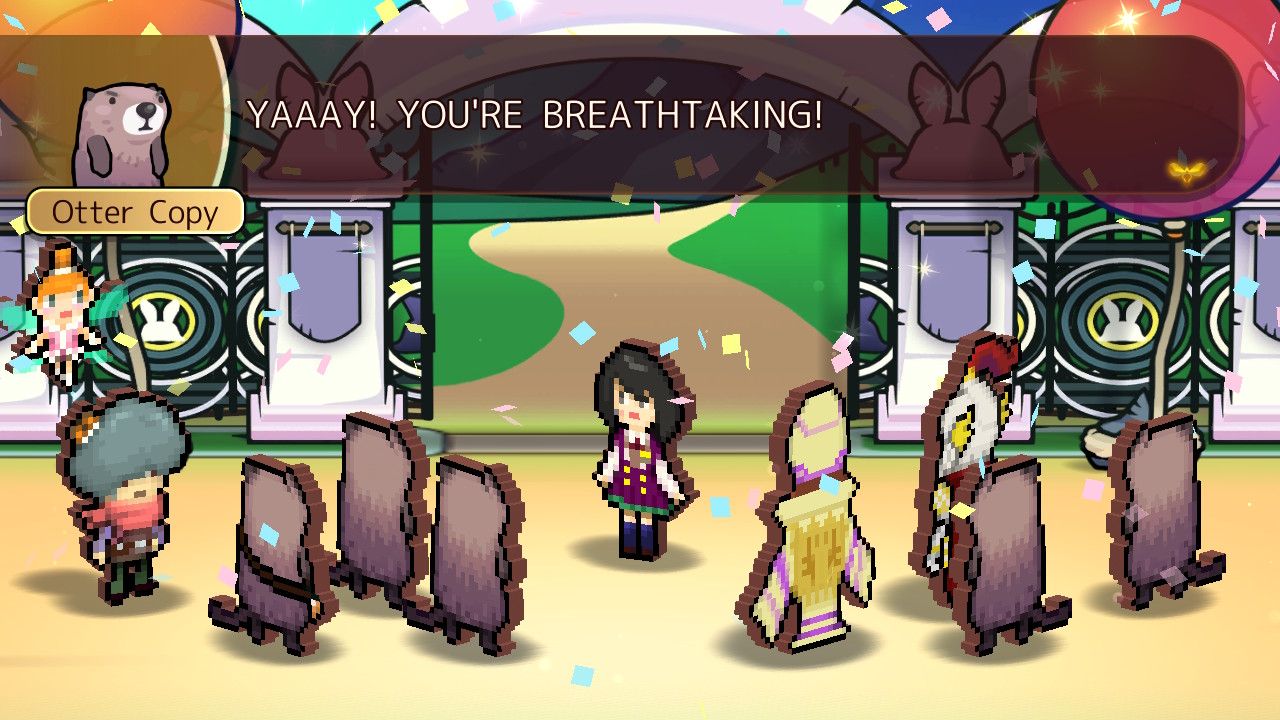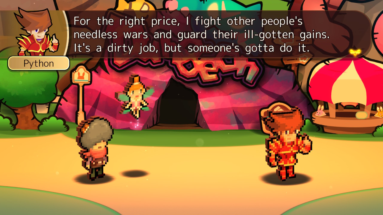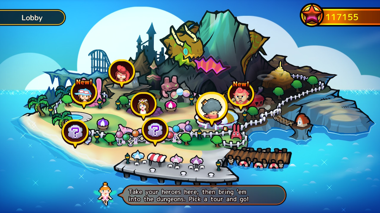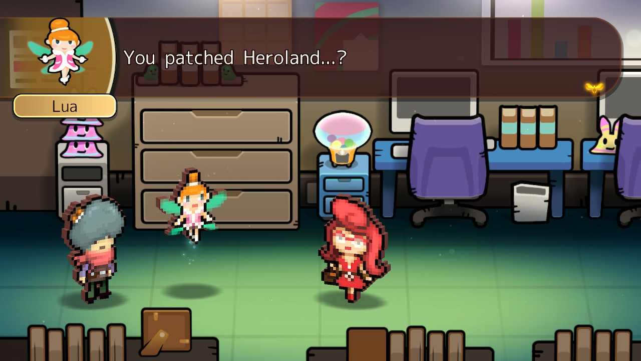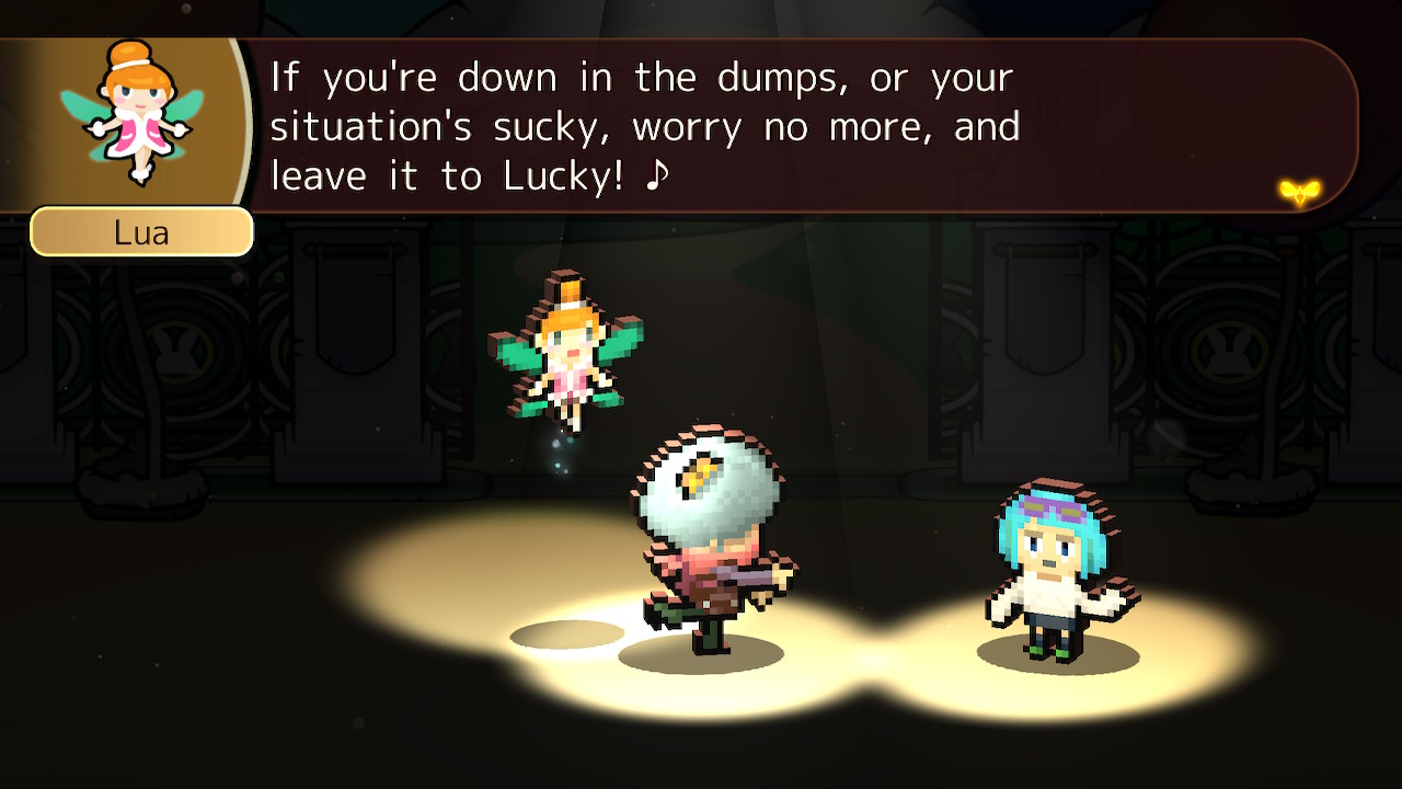 As Lucky, a newly hired tour guide for Heroland, the resort island where customers live out battles experienced by legendary heroes, your job is to ensure your clientele have the best experience possible by guiding them through various dungeon tours. Heroland is quickly established as an example of late-stage capitalism in motion – employees are expected to work unreasonable hours for minimal pay, live in inadequate conditions with bathrooms that cost money, and eventually take part in surgery that permanently turns them into a mascot. When Lucky and his fairy companion Lua get wrapped up in Heroland’s nefarious scheme by breaking a vase worth one billion $tarfish (the game’s currency), they have no choice but to discover the resort’s darkest secrets in order to find a way out of their predicament.
