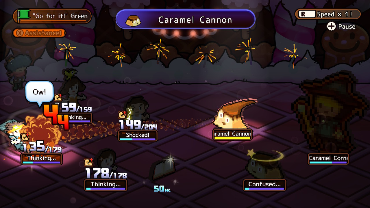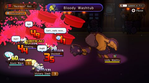 While there’s a nice variety of foes, between things like slugs, trolls, and giant gumball machines, they all get palette swapped several times and even bosses get excessively reused during sidequests. Bosses aren’t any better to fight than regular enemies either, as none of them ever incorporate any tricks to change fights. What you do during hour one feels exactly the same as what you’re doing during hour 30, and it makes the game a total slog to play.