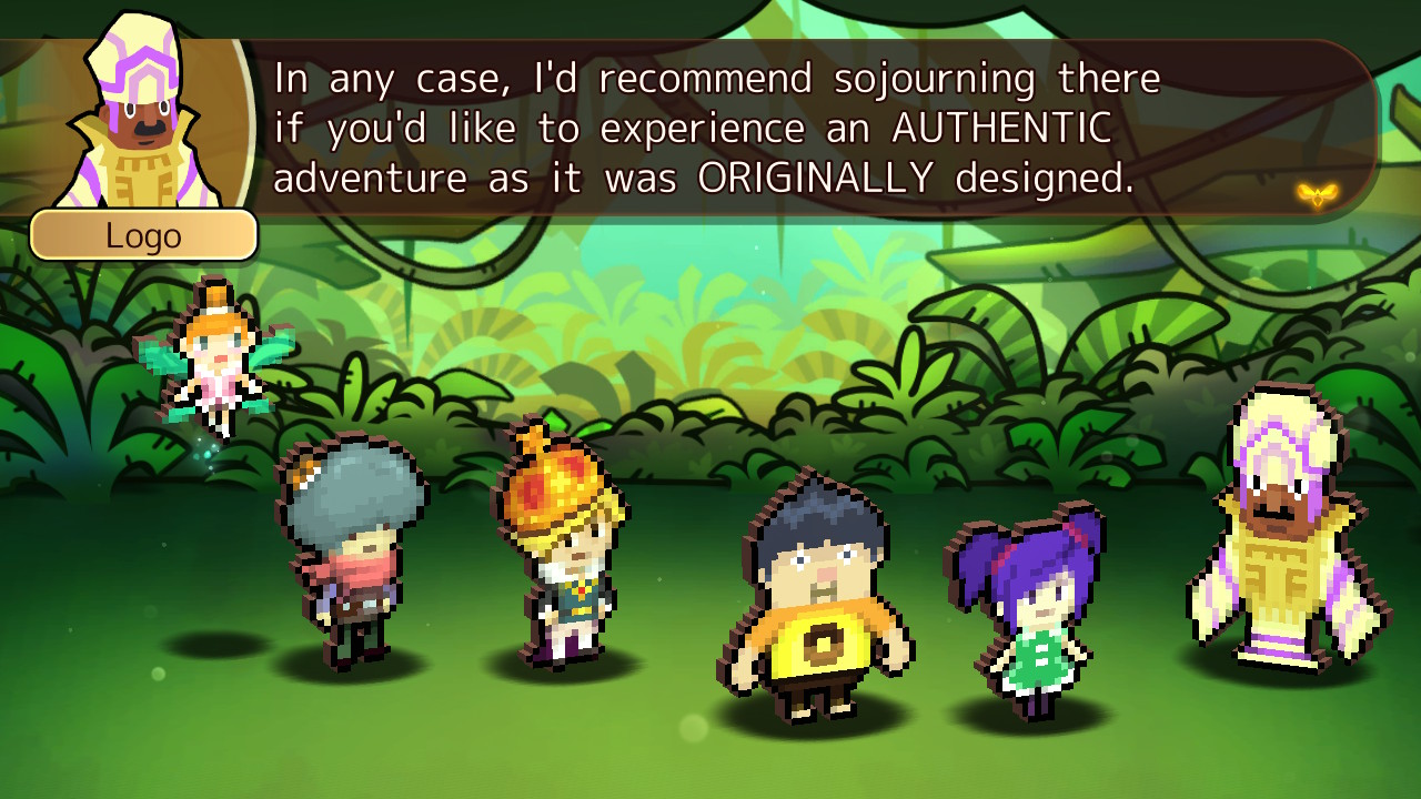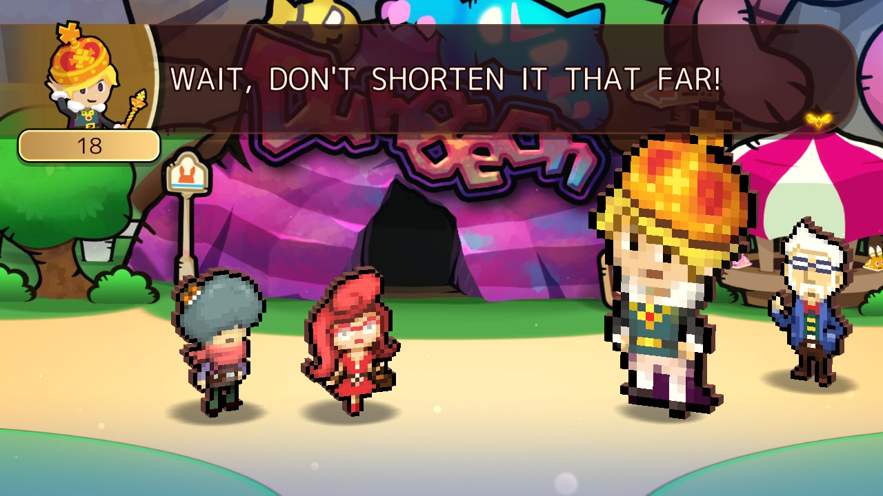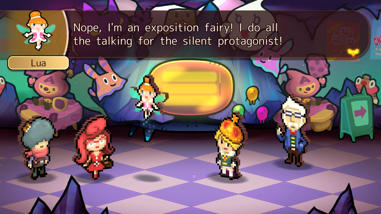 The main story is actually where the writing of Heroland is at its weakest. The pacing of many cutscenes is dragged down by Lua, who has an annoying tendency to react incredulously to almost everything other characters say. It doesn’t pick up or even have a clear-cut objective until more than halfway through, where multiple parties of great import start showing up at Heroland. From there, the plot simply becomes a MacGuffin hunt in which the twists are obvious and multiple events are mentioned without being shown. Even the ending is played as a joke, so players who plan on rushing through Heroland won’t get much out of it. Where Heroland shines though is everywhere in between – its unrelenting comedy channels the spirit of a Working Designs localization and Nippon Ichi Software’s Disgaea series to provide a memorable journey.