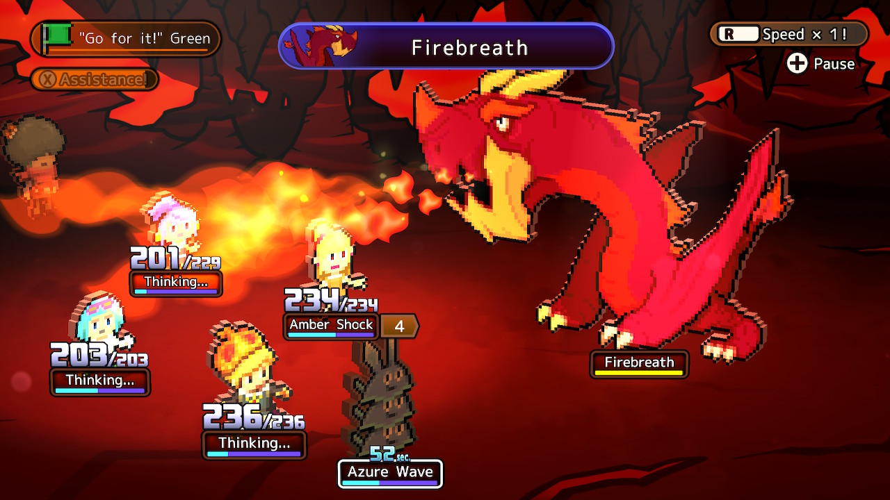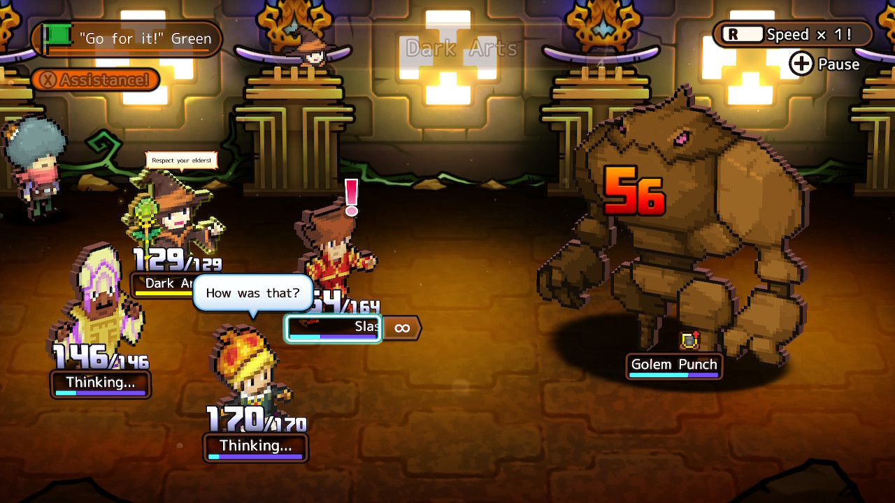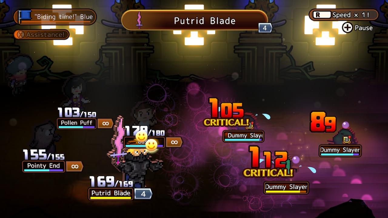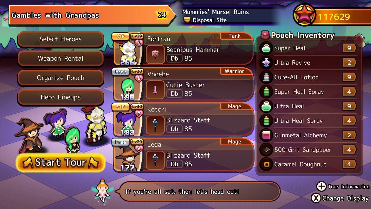 As the tour guide for your dungeon party of four, your job is to watch your party fight automatically, intervening to help as necessary. Gauges will start filling, and as they fill, combatants will decide what to do. Basic attacks occur as soon as the gauge fills, but skills have casting time before they trigger. In addition to using items, you can either give general party-wide commands or you can give specific guidance to a single character. It’s essential to intervene with commands, as the AI tends to waste skills on weakened foes or try to heal allies who are barely hurt. After doing something, Lucky will have to wait a bit before he can assist again, a penalty that gets reduced as Lucky’s guide level increases. The biggest flaw with the combat is that it’s incredibly slow, making even the simplest of battles take several minutes. The saving grace is that there’s an option for speeding up battles available at any time, but it just feels like a cheap solution for an otherwise huge problem.