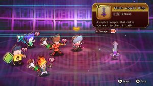 Dungeons are laid out in a sequence of tiles, much like a board game. Your goal is to move from left to right, defeating enemies along the way, until you make it to the boss that waits at the end. Sometimes you’ll get branching paths that determine which enemy groups you fight, but beyond that, every dungeon is identical. Thankfully, every dungeon has at least a few cutscenes to break up the monotony, as well as other events like a black market dealer you can buy rare furniture from or a chance to repair your weapons courtesy of the blacksmith.