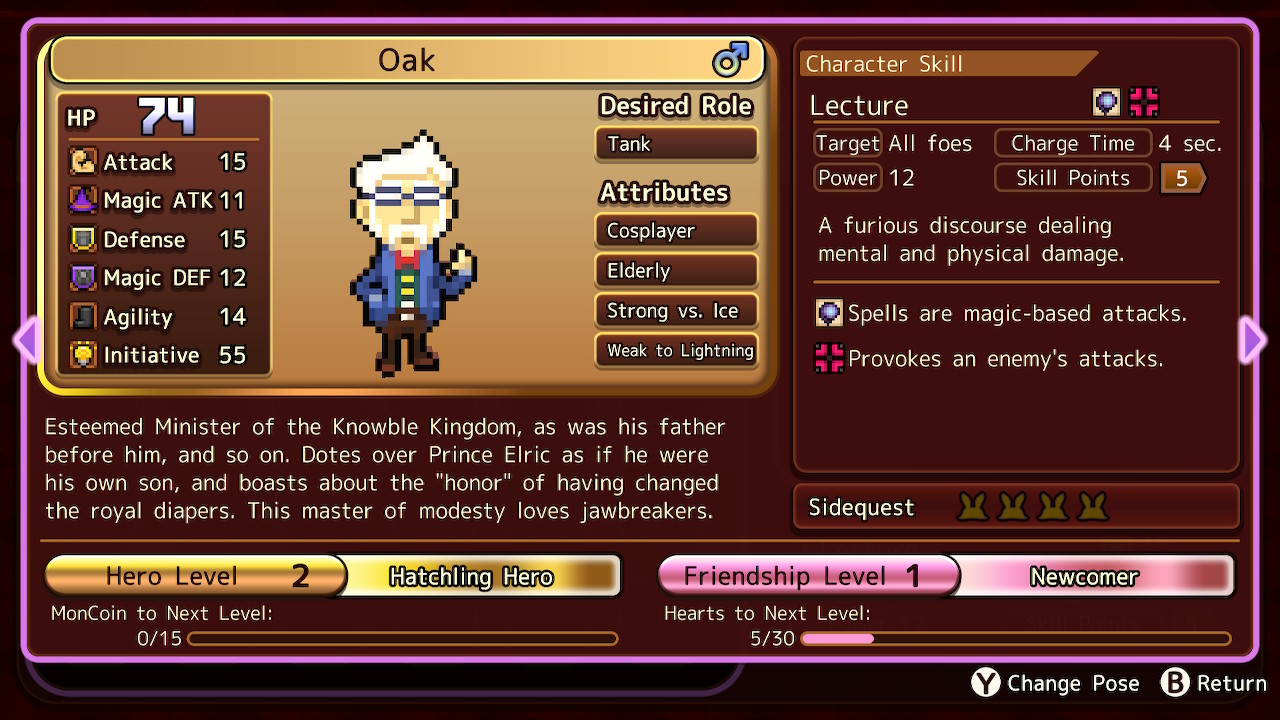 The intimidating president of Heroland and the Dark Lord who fought the legendary heroes in the past. He claims to be a changed man since his defeat and just wants to run Heroland in peace, but it’s an obvious cover for his true intentions – to obtain the Demon’s Pearl and use it to gain ultimate power.