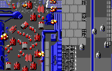 Even when compared to its direct sequel’s, Herzog’s selection of available units is pretty small. Since capturing enemy bases isn’t an option here, foot soldiers only serve as cannon fodder for your enemy’s offense, while tanks and the occasional Side-Car (basically this game’s version of the Speedbikes from Zwei) will be your go-to units for most of the game. Spamming endless waves of Tanks and Side-Cars while occasionally sending some Anti-Tank Guns and AAM (Anti-Air Missile) Carriers into the field is a viable strategy here, but the real star of the show here are the Grand-Slam Missilies, (theoretically) huge, hulking, costly nukes that, when fired, very slowly traverse the battlefield in an unstoppable death march that ends with the instant destruction of your enemy’s base, regardless of how much health it had the moment the missile hit. These doomsday weapons can only be destroyed by colliding headfirst with an enemy’s own Grand-Slam, but since the game offers no visual representation of them other than a tiny blip on the on-screen radar (which can be either easily missed or misinterpreted as a graphical glitch by inattentive players), it’s often very hard to judge their trajectories, which means that players who find themselves on the receiving end of a Grand-Slam assault always have a strict time limit to worry about… unless they are willing to dough out the Gold to counter the enemy’s missile with another missile of their own, of course.