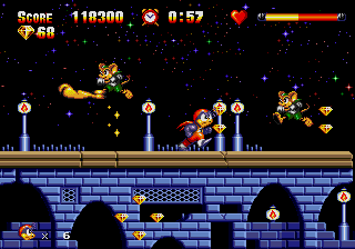 It’s a shame High Seas Havoc is so hard, when it’s got a lot going for it. In addition to its dependable controls and solid gameplay, it’s got some beautiful presentation backing it up. The game is a treat to look at; full of colourful well-drawn and animated sprites, a variety of appealing stage designs, and nice background effects like scrolling skies, shimmering cityscapes on fire and even an Aurora Borealis-type effect in the snow stages.