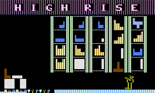 Highrise sure does look like a long lost sibling of Tetris. In practice it does play quite differently, but it still appears like some kind of lost antecedent of the “falling blocks” puzzle genre – publisher MicroLab (“MicroLearn” apparently was just a label to emphasize the educational value of the game) started advertising and selling it around September 1983, almost a year before Alexey Pajitnov made his groundbreaking invention, and several years before Tetris finally caught on in the West.