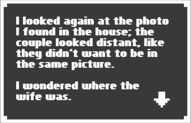 It’s also questionable if the low-detail pixel graphics were the right choice for a horror game. The hero cannot but keep the same dopey look throughout the story, no matter what happens to him. Sure, it has been that way in countless great classics, but Home never gets all that disturbing due to the lack of visual nuances. The flashback-like narration in silent movie style cut-away text panels is neat, though.