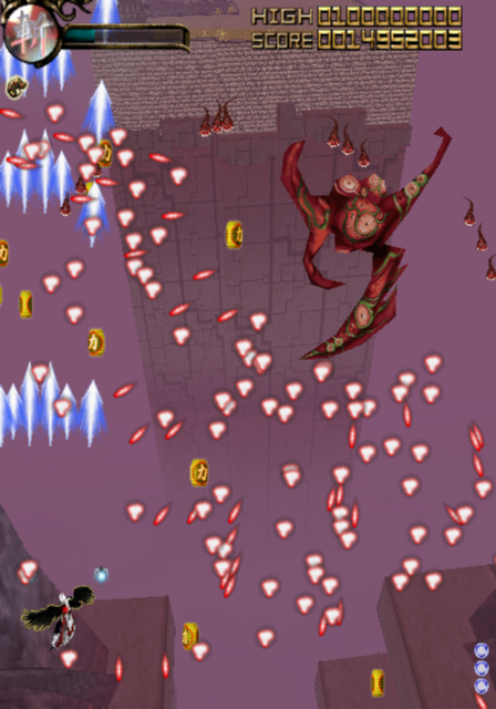 The only real extra of the console port is the addition of a Gallery Mode, which can be tedious to unlock. You need to clear at least the first stage and either die or quit after that to add one more entry to the gallery. This process is in conjunction with the credits system, so going past the first stage it adds one more credit to your disposal, and each credit earned corresponds to a gallery entry. With a total of 55 credits, you can unlock the full gallery. Other than this bonus, the PS2 version has no stage selection or means of practice, so it can be considered pretty bare-bones. The PAL release allows you to select between NTSC 60hz or PAL 50hz display, and the latter seems to slow things down a notch. Other than that, the PAL version has english menus and text, including a baffling translation of the intro, but it’s strangely missing the brief tutorial. Moving forward to 2012, the arcade version of Homura was added to Taito’s NESiCAxLive system, marking the last release date related to the game.
