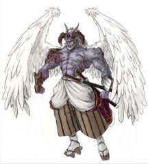 The third boss and only female character in the game. She resembles a tengu, just like Homura. Yuki first summons a big toad-like creature, and after that she transforms into a semi-nude, blue-skinned, double-wielding katana angel. Smooth move, Skonec.