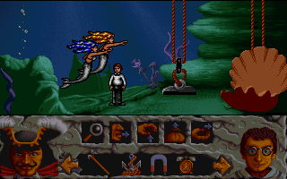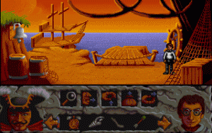 The graphics are excellent at least, although clearly the developers didn’t have the license to use Robin Williams’ likeness so Peter looks like a standard weenie, and the music is decent too, at least in the Amiga version. It’s also amusing to see the image of Captain Hook in the interface bar shake his hand…err, hook, whenever you solve a puzzle. The quest is remarkably short though, as the whole game can probably be beaten in less than an hour. Nearly half the game consists of obtaining the proper pirate attire (including a painful sequence where you need to visit the dentist to get a gold molar pulled in order to barter for something else). The rest consists of a brief jaunt through a maze-like jungle before entering the Lost Boys hideout, and then you’re confronted with Captain Hook before you know it. It’s not terrible, but for a game based on a movie about rediscovering the wonders of childhood, the Hook game totally misses the point and ends up as yet another run-of-the-mill product.