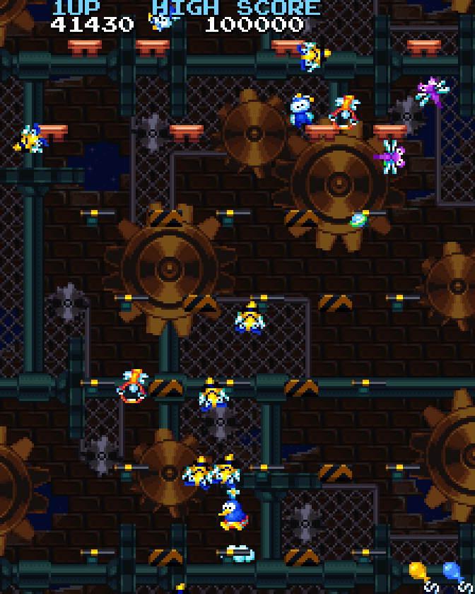 It can get overwhelming with so much going on, which isn’t helped by how easily the sprites can blend into the more complex backgrounds. But if you can get into the groove, with solid controls and straightforward mechanics pushing you to keep moving and shooting, it’s an enjoyably zen experience with just enough challenge to stay exciting. The options thankfully provide turbo fire if you need it and a high contrast mode that dims the backgrounds, along with charming borders to replicate the vibe of playing an arcade cabinet.