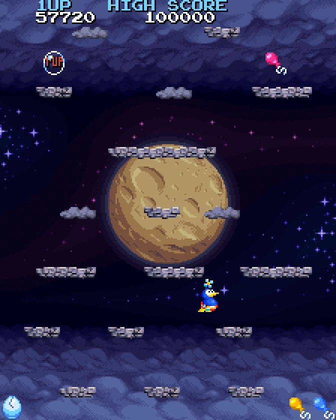 Fashioned after classic shooters, you control Hop the dodo bird, who automatically hops up a series of platforms while firing flowers at waves of bugs attacking you from above. You can move left and right, and even jump into one side of the screen to appear out the other. But the jump arc’s consistent so take note of whether or not you’ll make the gap.