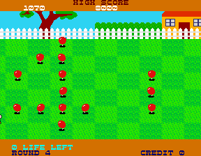 Hopping Mappy isn’t a terrible game, but it isn’t a particularly good one either. Since the Mewkies tend to bounce in disorganized mobs, it’s really hard to make out when you’re about to bump into one of them. And beyond the extra goal of grabbing items in pairs, there’s not really a whole lot of strategy to it either. Namco must’ve felt the same way, as it’s missing from all of their compilations. It only ever showed up on the Wii Virtual Console, and even the X68000 port (Tiny Hopping Mappy) is just a fanmade conversion.