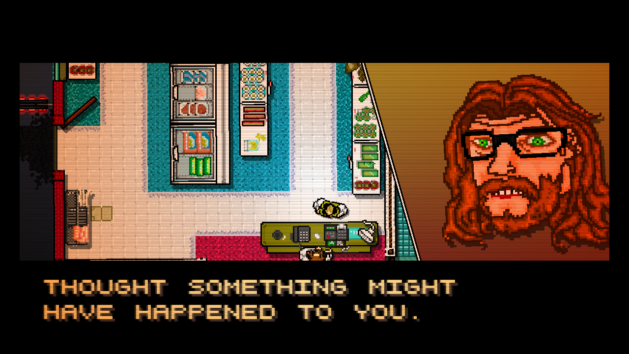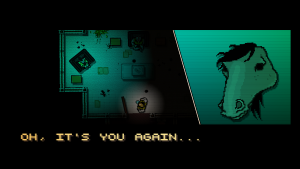 After each mission, you head by the local pizza joint or VHS rental store and talk with the same friendly bearded glasses dude who gives you something for free and bids you a nice night. You then wake up another day to get your next mission, and this is the basic format for much of the game. As you may expect, it doesn’t stay like this forever, and things become increasingly disturbing and improbable until it takes a drastic turn for the worse. The plot itself is actually quite enjoyable and, at times, makes you feel guilty for being a stone-cold killer. Granted, there are quite a few questions that aren’t explained by the game’s end, but the mystery can be said to enhance the game’s dark atmosphere. It also takes a fair deal of inspiration from the recent neo-noir hit movie Drive, to the point that the film’s director, Nicolas Winding Refn, is thanked in the credits.