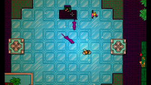 To complement the illustrious graphics is one of the best soundtracks in recent memory. The OST is utterly phenomenal and almost impossible to dislike even if you’re not big on the game itself for whatever reason. Dennaton got no less than nine indie musicians to work on the game, including M.O.O.N., El Huervo, Scattle, and Jasper Byrne, who is also the creator of the horror game Lone Survivor. The music in most cases sounds like what would happen if you fuse the gentle electronic rhythms of Tangerine Dream with the dark gothic energy of Sisters of Mercy, though that description doesn’t even really do it justice. From the spacey pop feel of “Crystals” to the almost cinematic dirge of “Knock-Knock,” the soundtrack keeps you going until you kill absolutely everyone in a stage and the unsettling ambience of “Crush” sets in to unnerve you as you reflect on what you’ve just done. It’s really hard to pick any one track out of the rest that really stands out, and it’s easily worth a purchase on its own, especially as an introduction to synthwave.