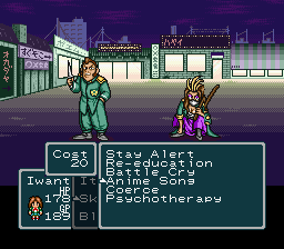However, in spite of these obvious flaws, the gameplay still manages to be interesting. How? Well, with the use of a very peculiar humor distilled through its interface. Be it status effects (instead of traditional paralysis and confusion, we get “embarrassment” and “pheromones”) or spells (in order to “disembarass” the whole team, you can cast “Anime Song”), and not mentioning gears like “Cat Ears” or other items like “Kung-Fu VHS”, everything was relooked to make up for the game’s classical substance. The clubs are equally goofy too. While the basic ones that are centralized in the Club Center are the usual Kendo and Sciences stuff, you’ll also come across hidden clubs scattered across Utusho Island, like the Alchemy club or Girl’s Wrestling club. During battles, where you’ll often face juvenile delinquents and irascible sport teachers, it may also happen that an enemy appears to dodge an attack but ends up getting bashed anyway, which the prompter will comment with a cold “Life sucks.”