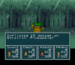 That’s what makes this game interesting. While the gameplay is relatively poor, the developers went to great lengths to make the adventure feels like it was straight out of a school-themed anime à la School Rumble or Azumanga Daioh, with an off-the-wall plot packed with funny dialogues and absurd one-liners. The whole universe is completely unique yet thoroughly coherent. To the obvious anime frenzy such as girls in tight gym outfit and the cultural festival with its traditional attractions, the scenario writers added a lot of purely original wackiness, like the three student militias constantly clashing to impose their own order, a failed school trip that ends up on an hostile desert island, and even seven mysterious “Wonders” of Hourai to uncover as a sidequest. It’s true the game isn’t a technical achievement, though, even by 1996 standards. The visuals are pretty archaic, even if the extraordinarily detailed battle sprites kinda make it up for it. The soundtrack is pretty cool, too. It was composed by Hitoshi Sakimoto (of Ogre Battle and Final Fantasy Tactics fame) and fits the game really well, especially that techno boss battle theme. You will have no problem enjoying the world of Hourai to its full extent.