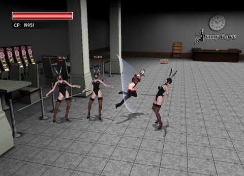 Huuma Mina plays with a very similar tone to Cinderella Escape. It’s goofy and ridiculous in every way, but also takes its stupidity weirdly seriously. Sort of. See, every time you beat a boss in this game, you capture them and have to put them through different kinky tortures to get information out of them to get to the next level. Mina is super into this. Like, to an uncomfortable level. She leaves them there after getting the info she needs just for poops and giggles. That playful, perverted tone comes out in every section of the game, especially if you’re aiming to get the secret level. I mean, the final outfit you unlock is a bondage dress that gives you super kicking powers and an aura explosion that can send you flying across a room. It’s an endless string of silly S&M gags and anime girl archetypes trying to kill you, and it’s kind of great.