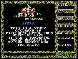 Released in 1985 for the usual range of Japanese home computers, this sequel is the only Hydlide game to never make it Stateside in any form, though it did see an European release with official MSX emulation using WOOMB.