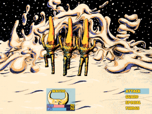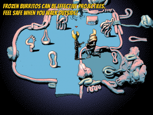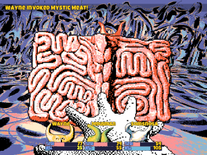 Wasted potential becomes tangibly part of Hylics, and is as much a component of the game as the rest of it is. Take, for example, the fade to black before a fight with a particularly grotesque enemy (of which the game has many). A hundred things can happen – another room, a strange and inexplicable landscape, genuine intrigue of some kind. The game doesn’t even consider the possibility. But hey, at least you can use a frozen burrito as a projectile, or microwave and eat it to revive yourself.
