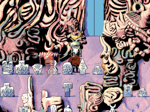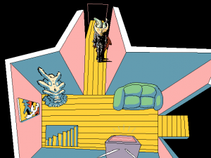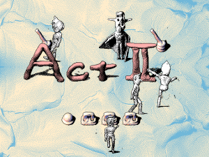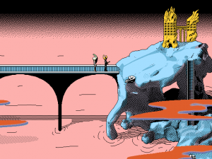 The issue, of course, is not that the story is simple but that it lacks one entirely. There’s no attempt to make any kind of narrative, even an absurd or incoherent one. Each time there appears to be an overarching plot it turns out to be a banal red-herring, including a so-called tyrannical king and a caped man who sets off “acts”, both of which do exist, but exist only.