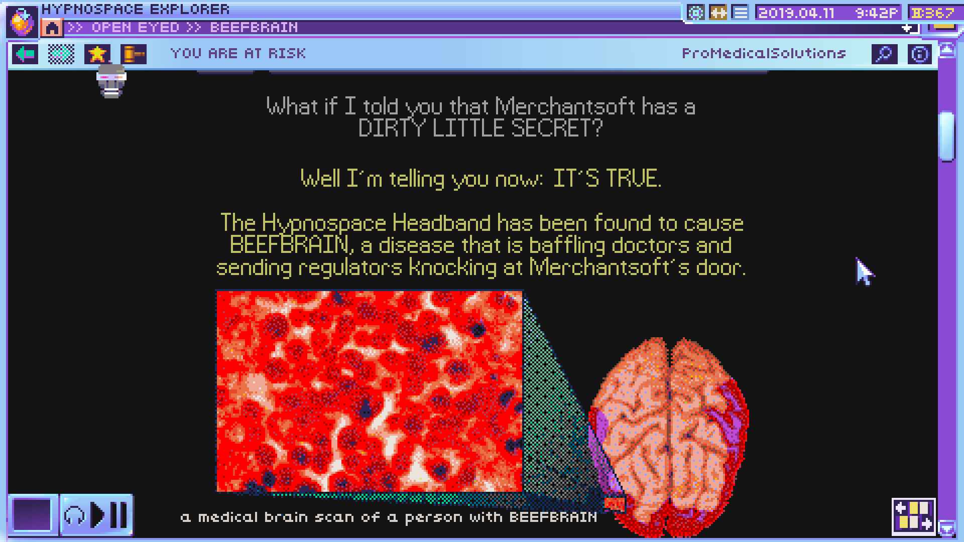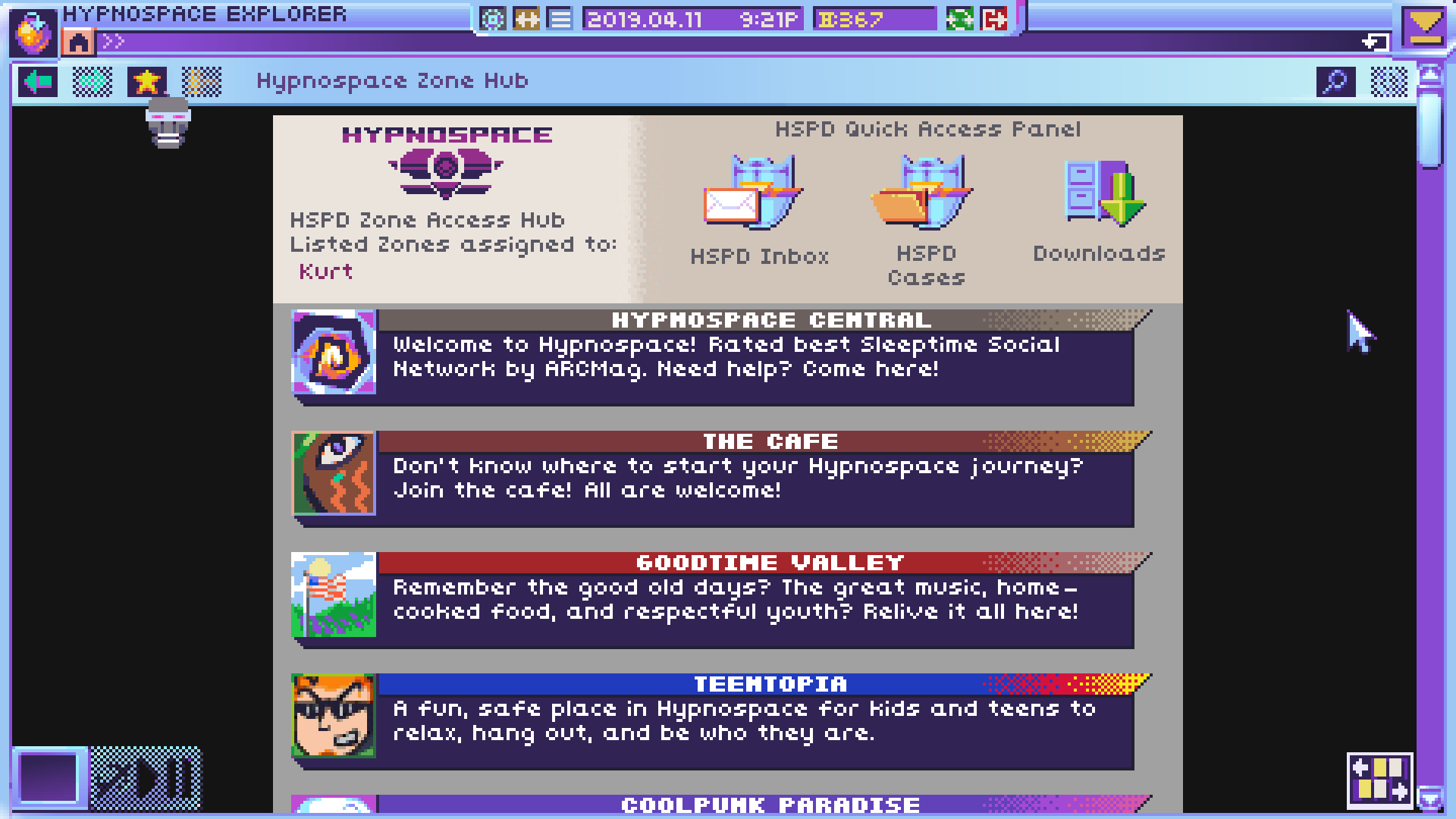 Even though the game is about policing the internet, Hypnospace Outlaw really isn’t interested in discussing similar contemporary real world issues, like whether social media companies should be held responsible for spreading far-right hate speech. It doesn’t come out for or against it, just notes how that system has the potential to be abused. What it does address is broader aspects of responsibility of tech corporations, as it’s pretty clear that the minds behind Hypnospace are reasonably incompetent and way out of their depth, not only at a technical level but on managerial and social levels too. It also examines the need for Internet archives and how this new media is ephemeral, especially resonant considering that, right after the game was released in 2019, Myspace announced it had simply lost over a decade of uploaded music.