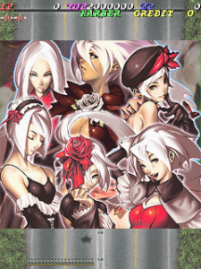 The game features an Arcade mode, a Practice mode for the Arcade mode, an exclusive Arrange mode, and a gallery containing 78 pieces of promotional and concept art of the game. There is also an options menu, where players can change their button configurations, save or load their data, and have their display in Yoko (horizontal) or Tate (vertical) mode. Yoko mode causes there to be wasted space on the left and right sides of the screen, but these can be filled through a small selection of wallpapers. It’s not much, but it’s nice to see them trying to do something with the space. Tate mode is how the game is played in arcades, filling the screen and leaving no wasted space.