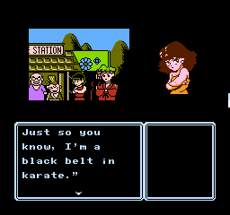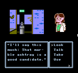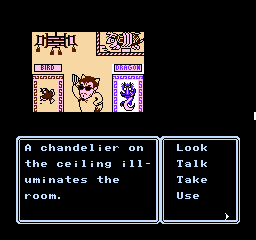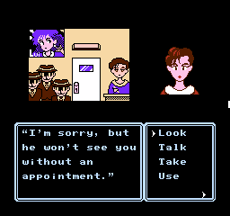 You’re presented with a list of actions you can perform, such as moving between locations or looking at objects and people, though there aren’t many actions compared to other Famicom adventure titles. Erika only has a handful of talents and a couple of friends with her at a time, and items aren’t carried between the game’s five chapters. In addition, each chapter is self-contained with unique locations, so you won’t be backtracking far to find the way forward.