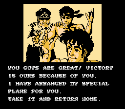 Victory Road does little to improve on the formula of the first game, which is honestly difficult to improve upon without drastically altering the end product. Regardless, it still feels like more could have been done to add to the gameplay instead of just putting Ralf and Clark in space. It feels even more cheap and unfair than the first game, and while the new weapons help a bit, they likely won’t last more than ten seconds on average. Whatever the case, Victory Road feels less like a true sequel to Ikari Warriors and more like the same game in a different setting, something like an expansion pack. Then again, this sequel was released in the same year as its original, so perhaps a bit more development time would have allowed for larger differences. Still, despite a lack of innovation, there’s still something amusing about two Rambo clones taking apart a jumping space crab piece by piece. Like its predecessor, this game is worth a play for its ridiculous premise, though the entirety of the game is ironically less ridiculous than the corpse and commanding officer from the first one.
