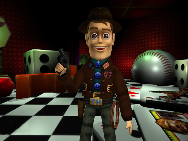 “Toyhunter” finally is a parody to Toy Story. Whoever is chosen to enter this stage gets once again transformed, this time into Cork, the cowboy doll main character of a fictional animated series. In this latest episode, Cork goes to hell; more explicitly, to toy hell. His owner just died, and in a final act of loyalty, his lover Sexy Doll threw herself into the coffin. The events throw Cork completely out of balance, so he takes to drinking, murders a gang of raw eggs, ends up busted, and tries himself getting executed to get to hell. But in last minute he is saved by his new friend, a talking rocket. The problem is, toys that die any other way than going with their dead owner just end up in ordinary hell. So now Cork has to find a new owner, and get him killed…