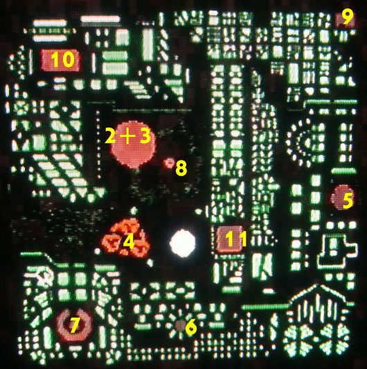 Before reaching Perfect1 you need to climb the ranks, all the way from 255. There are 11 top ranked Rithms, as they’re called, which act as powerful bosses. The remainder of the Garden’s inhabitants are comprised of 244 lower-ranked Rithms, and an infinite number of rogue programs called Goners. Your basic task is to kill the weaker Rithms, build your strength and, when you feel you’re powerful enough, take on any of the bosses in any order you please. But it’s not all shooting, there’s a neutral zone called the DOAsys where you can heal and chat with the various Rithms to get information. To see where each boss is situated, use this annotated map. Each number represents the boss’ ranking.