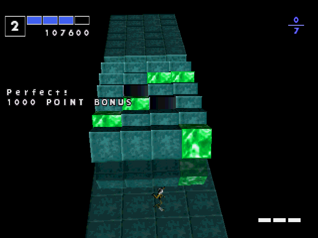 Thankfully, all is not against you, for capturing all the cubes in a given group will reward you with an added row (heralded by an unseen voice crying out “PERFECT”). This still requires good on-the-fly planning and reflexes, as the cubes continuously thunder towards the edge and will only pause if you capture a cube. You can use the standard and advantage traps at different times, and even speed up the cubes’ movement if you want to execute your plans quickly.