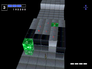 What ties everything together is the soundtrack by Takayuki Hattori, an anime and game composer who had recently worked on projects such as Romance of the Three Kingdoms V, Martin Successor Nadesico and the Slayers films & OVAs. Utilizing an orchestra and choir, the music imbues the game with a heavily oppressive atmosphere, where you’re scrambling to survive as dissonant melodies and wordless voices shout at you from beyond. The further you progress, the more haunting the music becomes, and it even changes to a frantic “crisis” piece if you lose enough rows that a game over is almost certain. It’s an amazingly apocalyptic score that helps to push Intelligent Qube from a neat puzzle game to a superbly ominous experience.