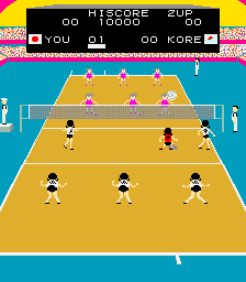 At least once, the feminist call for turning around the tired old "damsel in distress" trope in games has apparently been heard long before games even had gotten the attention of feminist discussion. Once again it was Sega who pioneered in more diversive roles for women in video games: At the beginning of the game, the eponymous princess is seen being carried away by an evil usurper's henchmen, but she easily escapes, turns into a ninja and sets out to retake her kingdom all on her own. Might get negative feminist points for the somewhat skimpy and not very ninja-like outfit, though. In the US, the game was circulated as Sega Ninja, presumably trying to trick evil sexist American kids into dropping at least one quarter before they could notice that this game had cooties. A few years later there was a Master System remake that just replaced the Ninja Princes with a dude, even as the Japanese box still read "Ninja Princess 1 Mega Edition". Interestingly, Ninja Princess seems to have kicked off a small wave of fighting ladies in Japanese arcade games, as it was followed by many more in the immediate future.