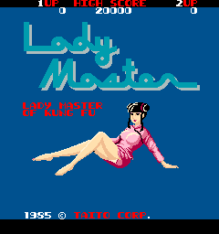 The "Lady Master" is just another "sexy fighting gal", but in this case it's the shrouded history of the title that makes it intriguing. It's the first documented game where the protagonist underwent a gender swap at some point during the development - it's just not certain in which direction, and when. There is a variant of this game called "Nunchackun" which features a male protagonist, but it is labeled as an unreleased prototype at Arcade History. However, there doesn't appear to exist any solid proof that Lady Master of Kung Fu was ever released, either. The ending contains a nude image of the protagonist for no good reason.