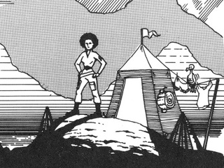 Galactic Saga was a series of ancient strategic simulations created by Douglas Carlston and published by Broderbund. The first three games follow the career of the male hero Julian du Buque of Sparta from his appointment as commander of Prince Tawala Mundo's armed forces to his eventual rebellion against the emerging despot Emperor. The final game, however, depicts the final struggle on Farside, the last outlier world of Tawala's military power. Commander of the local rebel forces is Benthi (who of course is somehow romantically involved with du Buque). In the game she is only ever assumed to sit in the commander's tent, but in the manual there are several depictions of her, sporting a magnificent afro. May the first original video game heroine even have been conceived as a person of color?