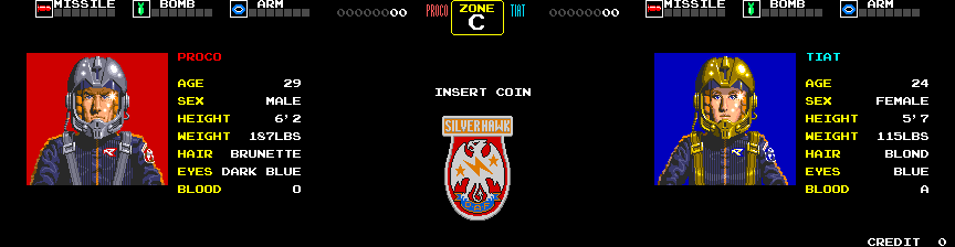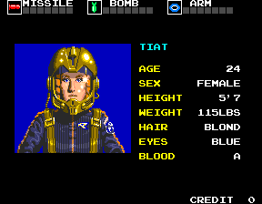 The pilot of the red player 2 ship in Taito's fishy triple-screen shooter is actually a woman, but you'd have to wait through up to three loops of the title demo to have that fact revealed to you in the first game. The sequel shows and mentions both her and her male companion Proco Jr in several of the endings. Especially interesting is the one that suggests that the two might be a married couple. Granted, that is also the joke ending that reveals the entire mission as a dream, so you knever know.