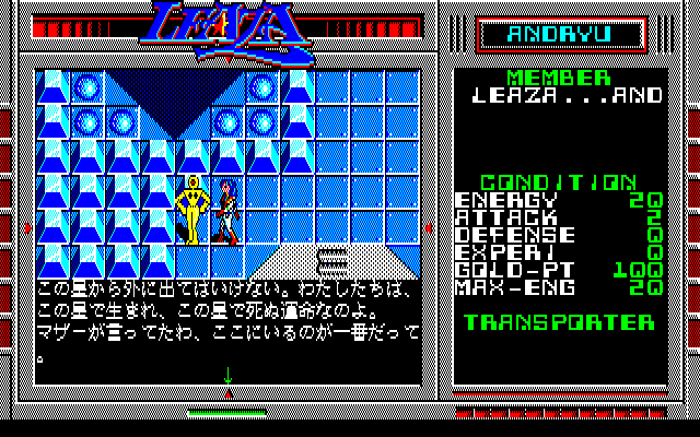Leaza is first introduced as the kidnapped girlfriend of the time traveling male protagonist in Hayato, who joins him after being rescued and fights alongside. Only a few months later, however, she got to star in her very own RPG, where she assembles a group of four adventurers to find a new planet for mankind, which is threatened by the cosmic destruction of its home world.