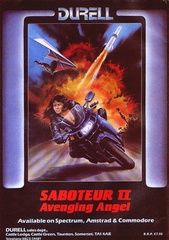 Well, those outside of the UK might not have heard about it, but Saboteur! was quite a popular game in Britain's Spectrum scene. The first game still starred a male ninja, but he was killed off before the sequel, causing his sister to go on a crusade for revenge. The cover still depicted her very unninjalike with waving hair and a plunging neckline, but in the actual game she's fully covered in ninja wardrobe. If you take the game's title screen over the cover, she also might be the first black video game heroine - unless that simply stems from the system's limited color palette.