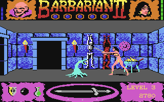 In the original Barbarian, players could only take the role of the titular savage to slaughter other barbarians in arena fights to the amusement of the evil sorcerer Drax. Princess Mariana always stood at the wizard's side, enchanted by his spell. With Drax' defeat, she comes back to her senses, and becomes an alternative player character in the sequel. As in the first game, she is represented by a ridiculously busty real life nude model on the cover, and the pixels used for her "clothes" in the game can be counted on one hand.