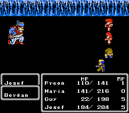 From the village of Mysidia, Maria was part of the upper class, but joins along with Firion and Guy in the rebellion, and stays with them throughout the entire game. She is both the first playable female character in any Final Fantasy game, as well as the first archer. Like all characters from the early Square RPG series, her Amano artwork looks nothing like her sprite in the Famicom version. She is largely disregarded in the RPG canon, since no one really wants to remember Final Fantasy II.