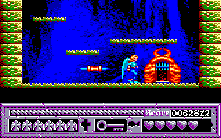 It's hard to imagine now, but there was a time when Ubisoft was just a small domestic publishing house in France, which would explain why this Amstrad CPC exclusive explorational platformer was only ever released there. It is the year 3001. Mankind has long been wiped out by nuclear holocaust, and somehow everyone's souls ended up condemned to hell for eternity. However, the titular warrior angel will have none of it, and so she descends into the depths and bring those who repent to heaven. In the game and on the box cover, Gabrielle is surprisingly well-dressed for an angel, but apparently the artist just couldn't resist ripping off a nude painting by Boris Vallejo for the title screen.