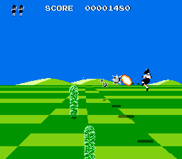 Animal Attack Gakuen is a shameless Space Harrier clone for the Famicom. Except instead of fantastical monsters, you fight against animals, and instead of a blond guy, you play as a schoolgirl named Nokko. The whole thing would be kind of embarassing, but for a clone it's pretty good, bolstered by the fact that the official Famicom Space Harrier port was terrible.