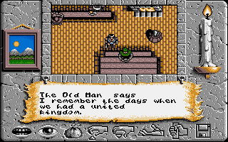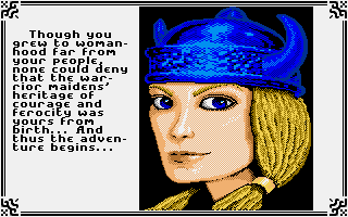 Origin Systems was one of the most innovative software houses of its time. All the areas they pioneered in... morality-driven RPG plots with Ultima IV, cinematic space opera sims with Wing Commander, free-roaming realtime 3D dungeon crawlers with Ultima Underworld and... jiggling breast animations with Times of Lore. Unfortunately that's already the most remarkable aspect about the Valkyrie, because aside from a short description at character selection, the character is a cypher. Marketing was much more obsessed with the half-naked muscular barbarian guy, anyway...