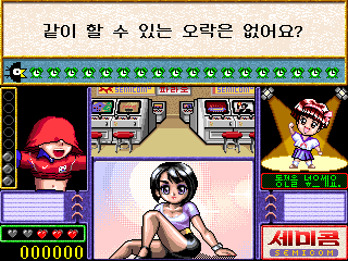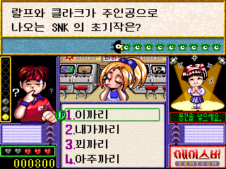 In this Korean quiz/board/dating game, you roll the dice to determine the next location for your date with one of three hot girls, and one of the possible destinations happens to be an arcade. Because this is also a quiz game, your love interest then starts to check your game related knowledge, from broad questions like "Which of these is not a computer storage medium?" to really specific stuff such as "What early SNK game did Ralph and Clark star in?" Oh if only there was a world where video game trivia knowledge resulted in dating success...