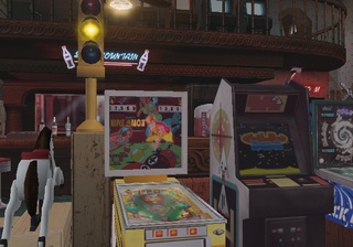 That didn't hinder The Williams Collection to include arcades again in all version, although the references are a little less obvious. Many machines are still clearly recognizable, such as the Tron arcade game under the guise of "Cyber", a more loose variation on Q*Bert called "Mr. Cube", another Missile Command lookalike named "Rocket Attack", "Worm" in place of Centipede, "Ghost Run", whose screen resembles the maze from Pac-Man, and many, many more. The interior with its two-floor setup and a bar in the back is based on a real location, Ground Kontrol in Portland, OR.