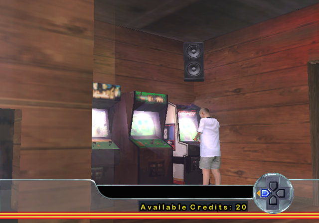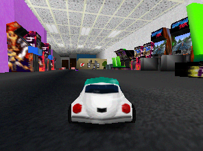 If you win a complete circuit of 28 tracks in Midway's arcade fun racer, you get to unlock a giant sized replica of the Midway office building to race through. While not precisely an amusement venue, it's still full with arcade machines of the company's most recent titles. The games on display are Gauntlet Legends, Area 51: Site 4, Vapor TRX and the direct predecessor San Francisco Rush: Extreme Racing - although the mushy textures ensure that only the "Rush" part is actually readable.