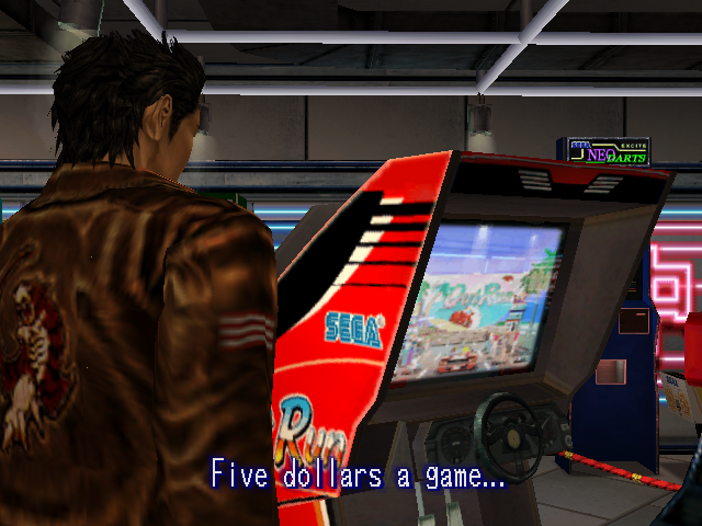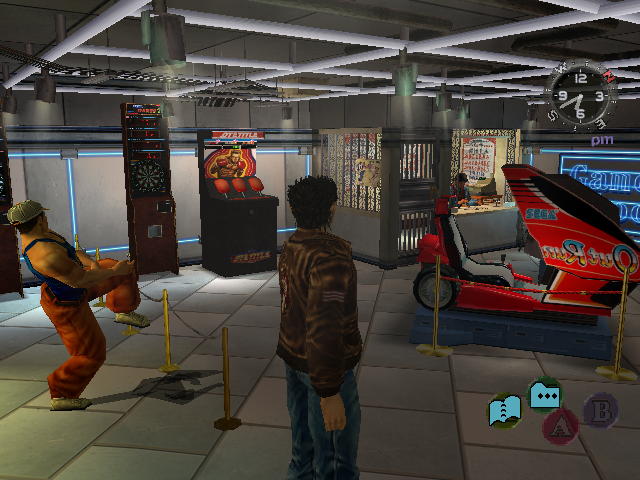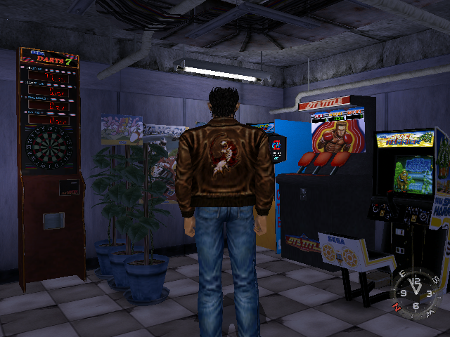 Even though the series crashed before it could be completed and maybe it wasn't all that great as a game, Shenmue will always hold a place in the hearts of its fans - among many other reasons, for its incredibly believable, fully functional arcade (aside from one broken machine and two rudimentary cocktail cabinets where sometimes gangsters would sit and play, with a screen display vaguely resembling Deep Scan). It was magnificent. Arcade perfect renditions of Space Harrier and Hang-On, a playable dart board and two variants of period-appropriately dressed QTE practice machines sure seemed like a lot to squeeze into an ingame arcade in 1999.