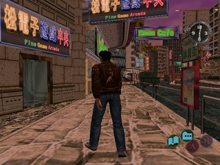 The much more adventurous sequel features even two more of Yu Suzuki's old games, OutRun and After Burner. Only Space Harrier and OutRun (and a few of the smaller games) are available at the local Pine Arcade in Hong Kong's Golden Quarter, though. After Burner and Hang-On have to be found in hidden locations in Kowloon.